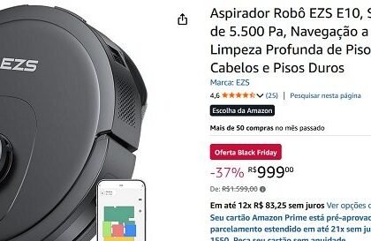 Aspirador robô EZS E10 cai para R$ 999 e ganha destaque
