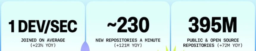 O relatório Octoverse 2025, divulgado pela GitHub, mostra um ano de crescimento recorde na plataforma. Entre setembro de 2024 e agosto de 2025, mais de 36 milhões de novos usuários abriram conta no serviço — ritmo superior a um desenvolvedor por segundo — elevando o total para 180 milhões.