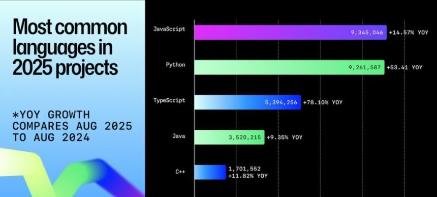 Python segue como linguagem preferida para inteligência artificial, ciência de dados e ensino, registrando crescimento de 49% em 2025, mesmo após o TypeScript assumir o posto de tecnologia mais usada no GitHub em agosto do mesmo ano.