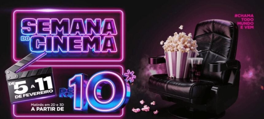 Semana do Cinema 2026 começa em 5 de fevereiro com ingressos a partir de R$10 para sessões até 17h e R$12 nos demais horários, válida em redes de todo o país.